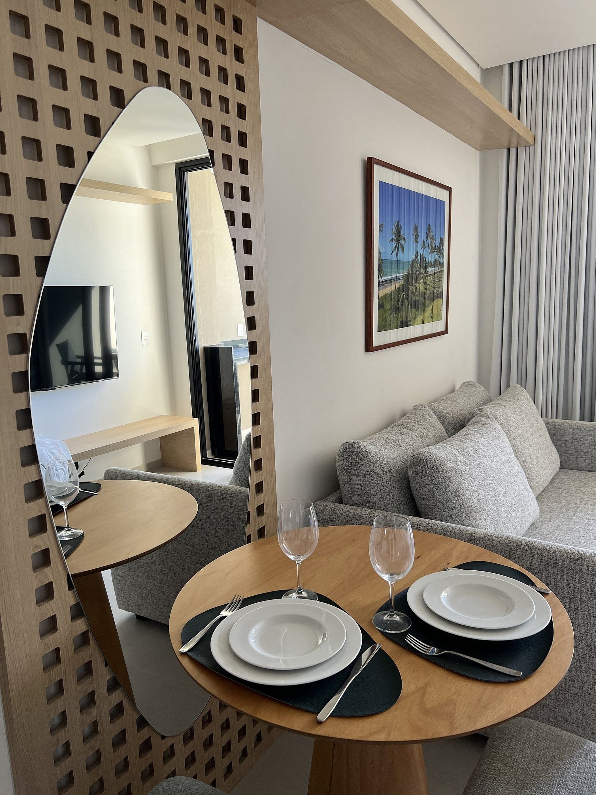 Located in Cais Eco Residence, the newest and most exclusive condominium in Muro Alto, this apartment offers a partial ocean view and sits directly in front of one of the pool complexes and the kids’ area.