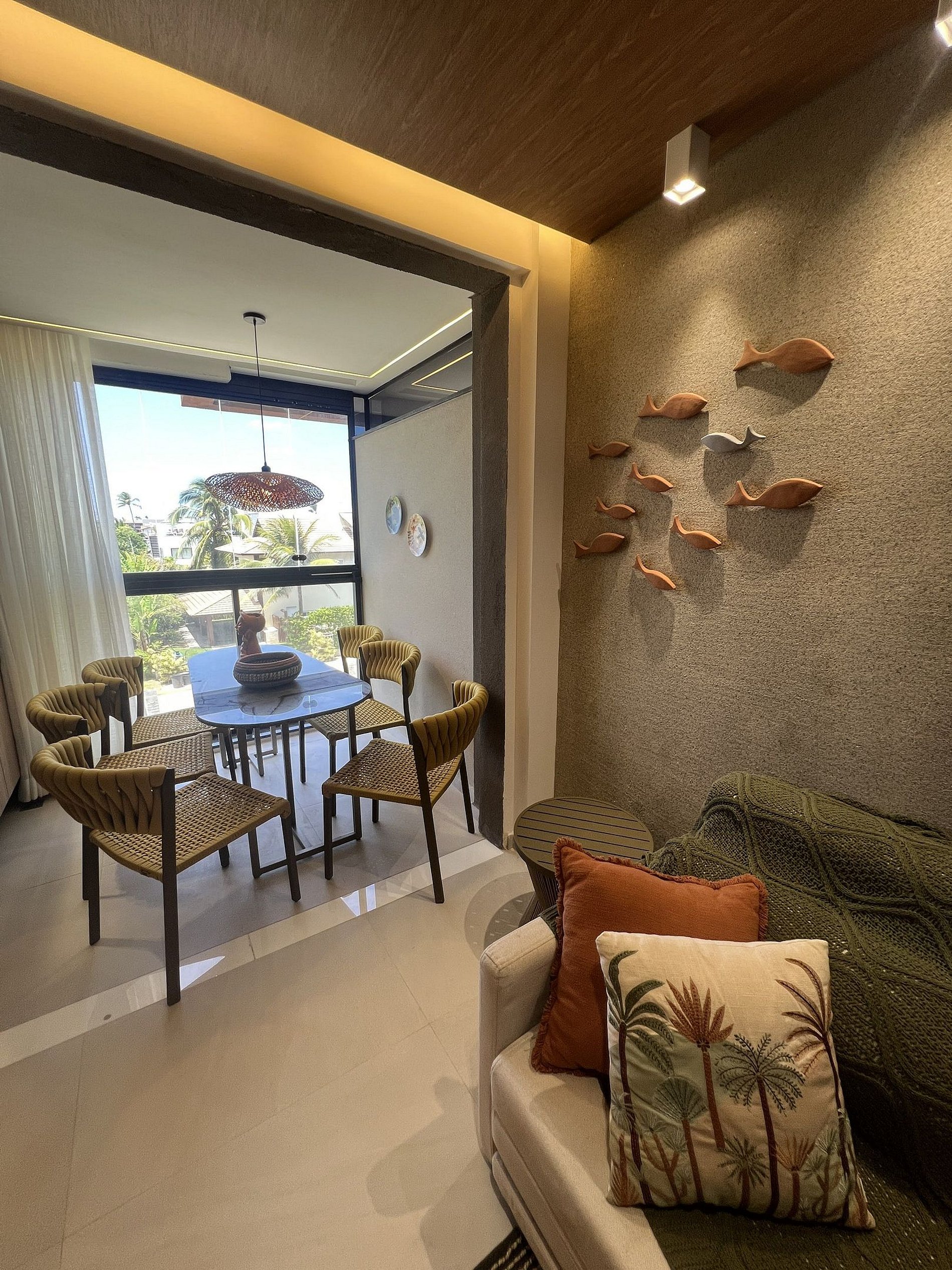 Located in Cais Eco Residence, the newest and most exclusive condominium in Muro Alto, this apartment offers a partial ocean view and sits directly in front of one of the pool complexes and the kids’ area.