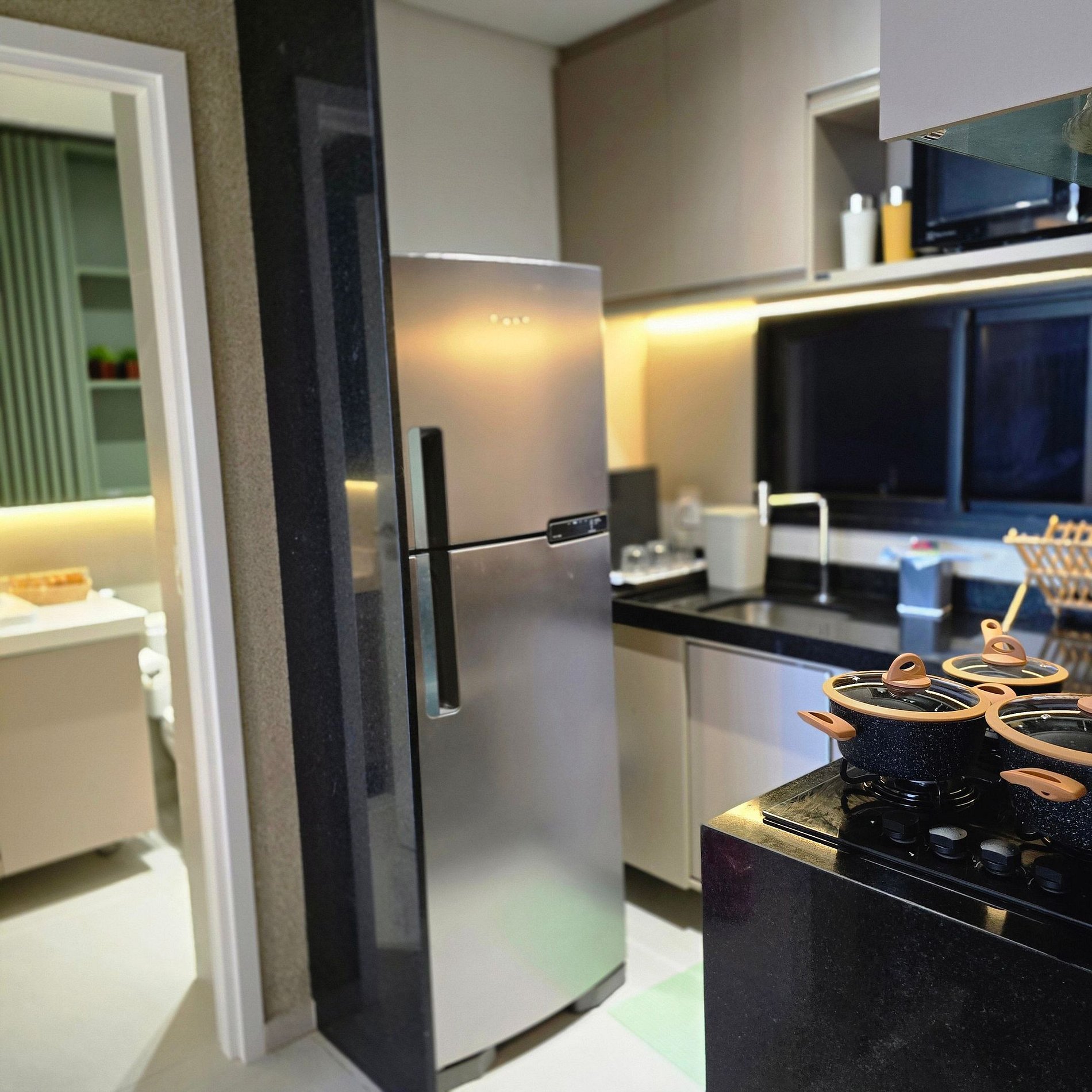 Fully equipped kitchen (fridge, oven, microwave, cooktop, and utensils);
