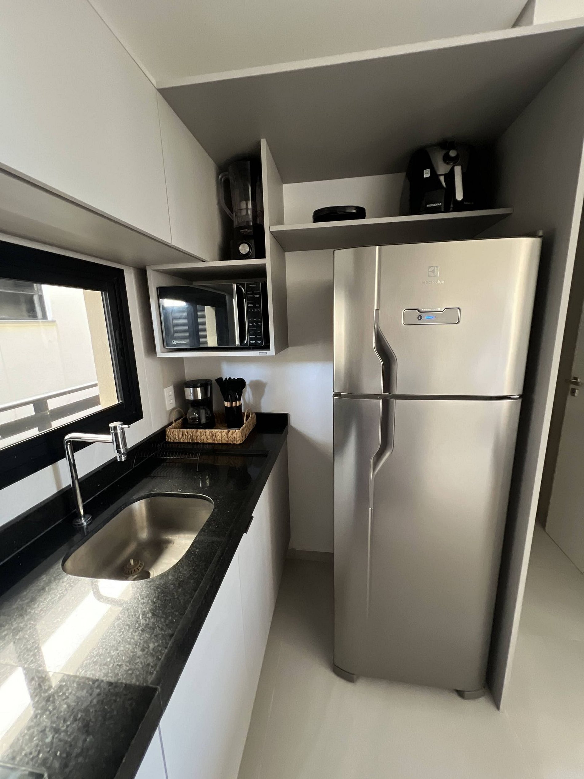 Cozinha completa (geladeira, micro-ondas, cooktop e utensílios);