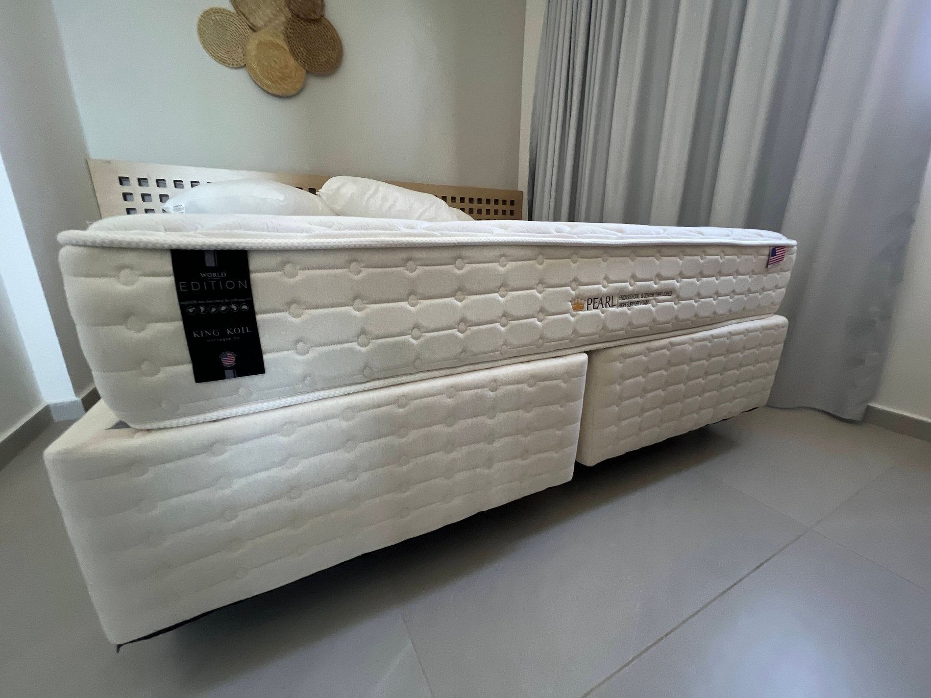 Quarto com cama queen King Koil, guarda-roupa, TV e ar-condicionado;