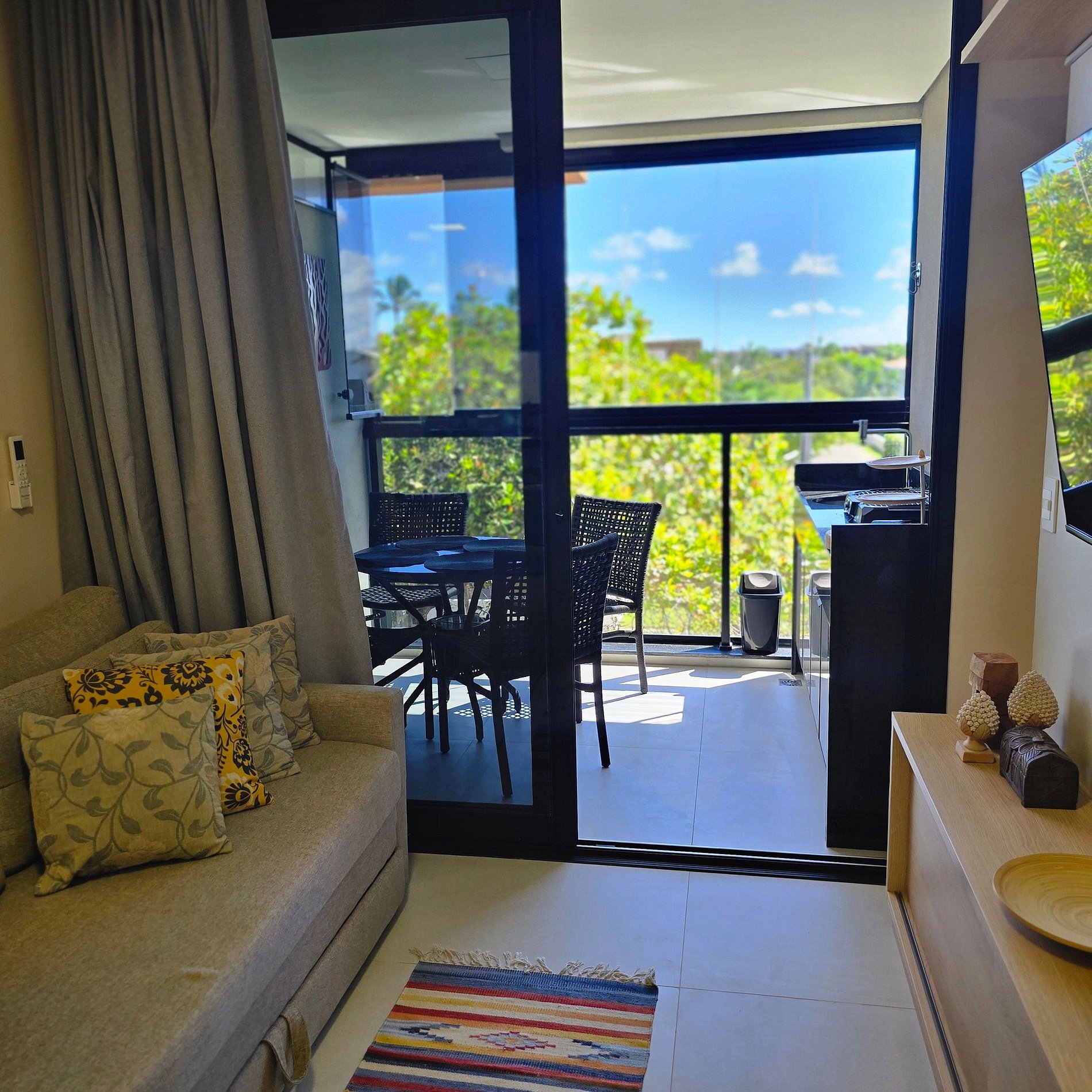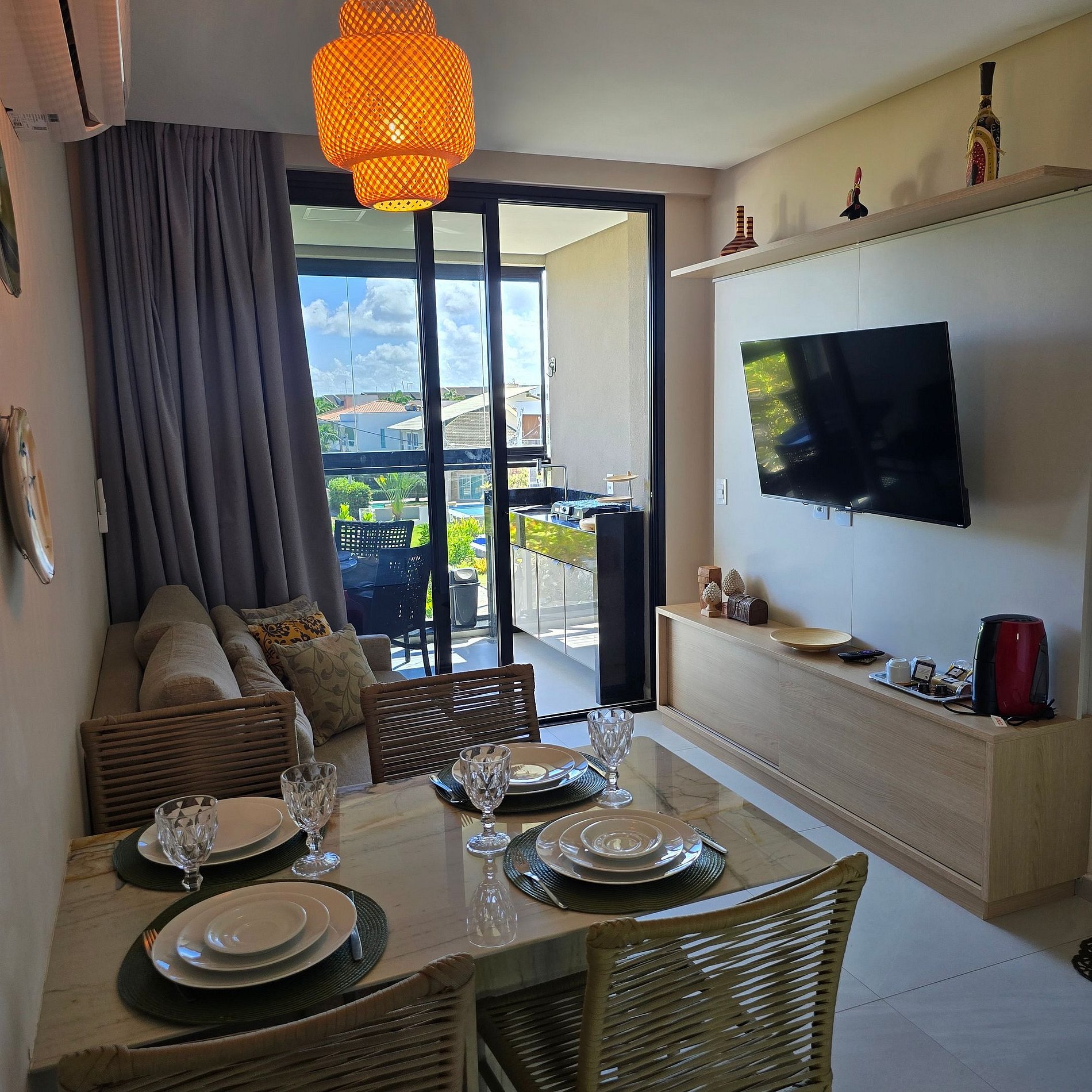 + Sala com sofá-cama, cozinha completa (geladeira, forno, micro-ondas, cooktop e utensílios);