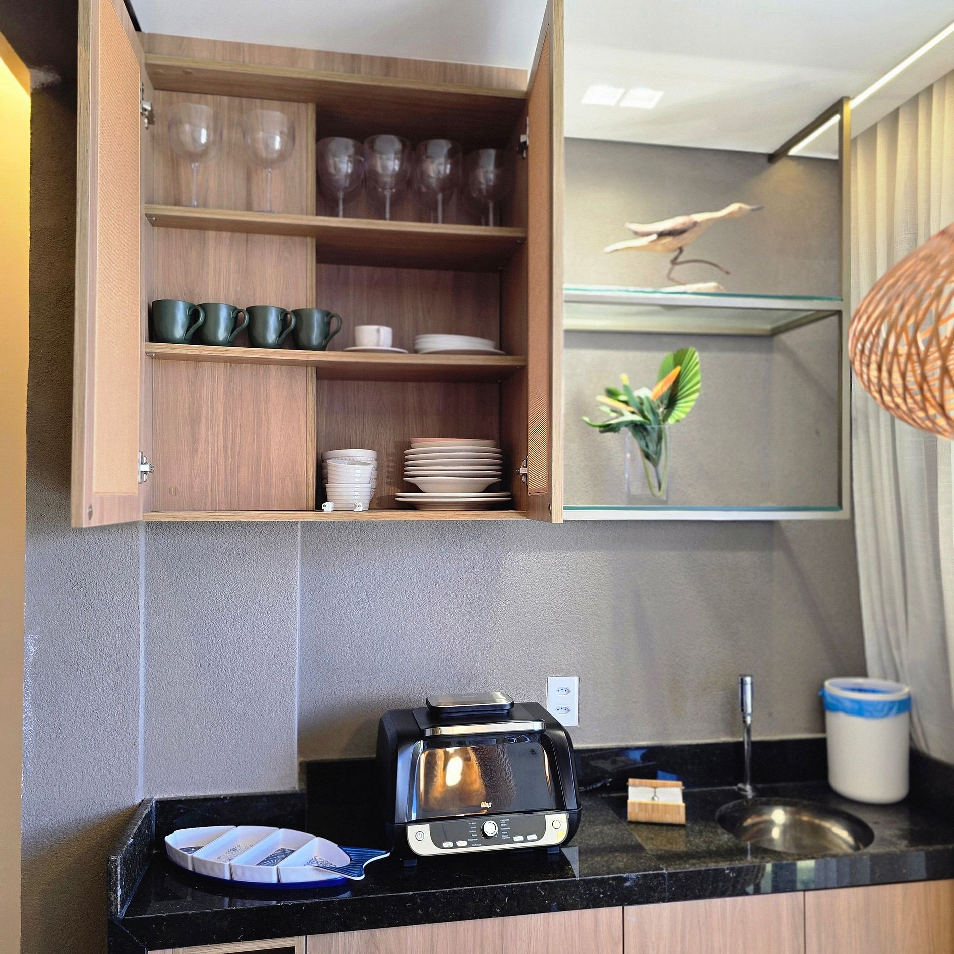 Cozinha completa (geladeira, forno, micro-ondas, cooktop e utensílios);