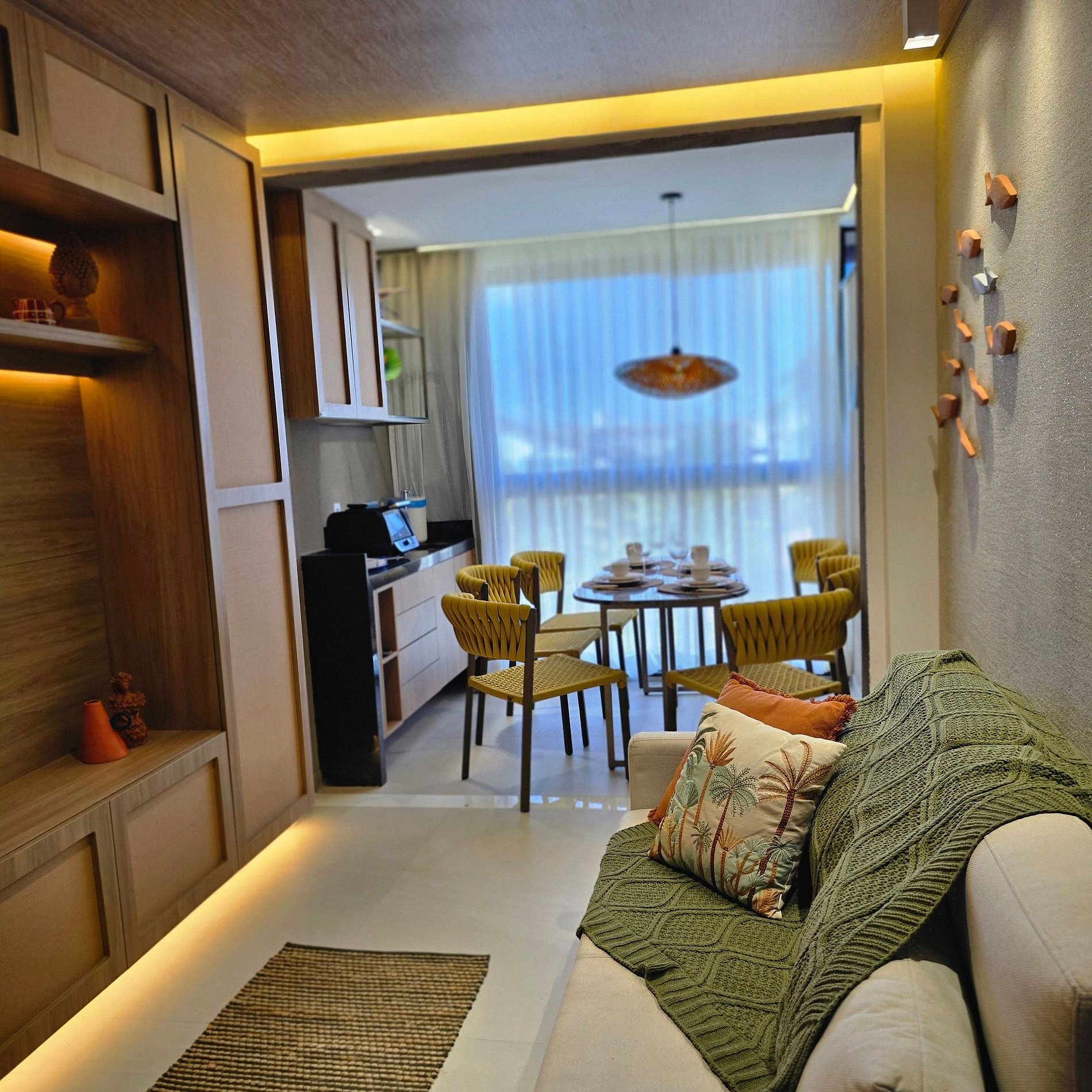 Desfrute do conforto de um apartamento pé na areia em Muro Alto, localizado no 2º andar da Torre 2 do Cais Eco Residência, perfeito para relaxar com muito lazer e uma vista incrível!